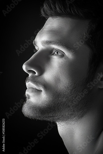 Striking black and white portrait of a fashion model studio setting artistic photography close-up view