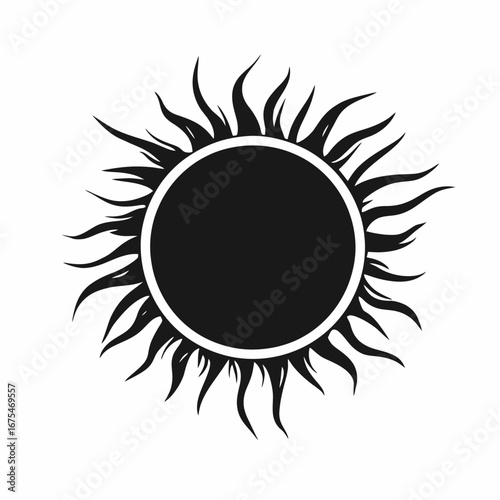 sun, sunlight, light, ray, flames, fire, black, white, silhouette, graphic, design, vector, illustration, symbol, icon, isolated, simple, shape, weather, energy, heat, hot, summer, sky, astronomy, celestial, star, bright, circle, element, abstract, artistic, modern, clip, art, drawing, outline, decorative, minimalist, wallpaper, print, pattern, sunburst, burst, tribal