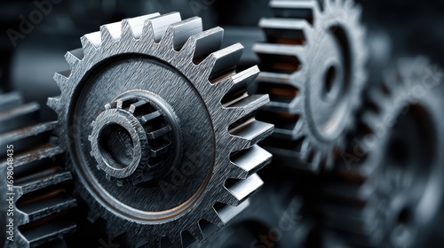 Striking CloseUp of Interlocking Metal Gears Industrial Elegance for Dynamic Projects, Boosting Creativity and Innovation.