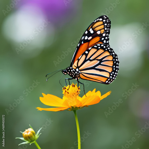 monarch, butterfly, nectar, orange, flower, green, setting, pollination, nature, beauty, insect, bloom, blossom, garden, wildlife, natural, seasonal, fresh, growth, striking, sipping, vibrant, lush, essence, flora, botanical, creature, wing, pattern, detail, closeup, macro, environment, ecology, outdoors, wild, colourful, art, illustration, photo, background, isolated, design, element, decorative, graphic, artistic