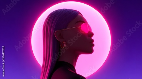 woman, neon, hair, glowing, eye, moon, portrait, profile, silhouette, pink, purple, light, glow, futuristic, surreal, mystical, fantasy, digital, mood, dramatic, aethereal, technology, vibrant, contrast, minimal, abstract, dark, mysterious, bold, moody