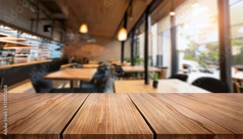 Striking Scene Serene Solitude at a Minimalist Modern Cafe, Featuring a Sleek Wooden Table Amidst Understated Elegance and Calming Neutrals, Evoking a ZenLike Aura for Tranquil Ambiance.