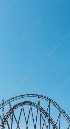 roller, coaster, track, steel, sky, blue, metal, amusement, park, structure, ride, attraction, vertical, arch, curve, bright, sunny, summer, vacation, fun, leisure, empty, daylight, clear, architecture, tour tourism, travel, steelwork, funfair, entertainment, beautiful, colourful, creative, modern, elegant, stylish, professional, decorative, vibrant, stunning, amazing, marvellously, fantastic, gorgeous, lovely, charming