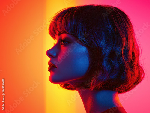 auburn hair, woman, cinematic, profile, make-up, beauty, fashion, lighting, modern, portrait, dramatic, creative, coiffure, aesthetic, expression, elegance, closeup, contemporary, personality, trend, glamour, model, capture, natural light, urban, trendy, youth, design, art, contrast, style