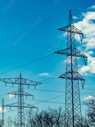 pylon, stream, energy, pylon, electricity, tree, countryside, field, infrastructure, duct, high voltage, cable, technology, power plant