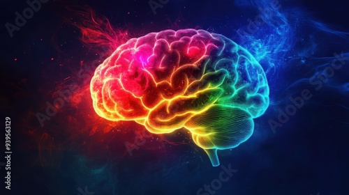 Strong brain illustration in glowing neon colors on a dark background, symbolizing mental power.