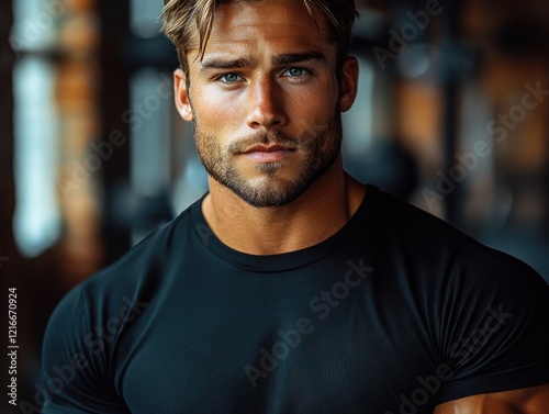 fitness, gym, muscular, man, strength, physical exercise, confident, evening, blue eye, pose, determination, physique, health, training, portrait, athletic, lifestyle, exercise, male, young adult, bodybuilder, motivation, energy, sharpened, intense, style, casual attire, interior, lighting, physical fitness, sport, appearance, expression, athleticism, challenge, endurance, person, man, businessman, photogenic