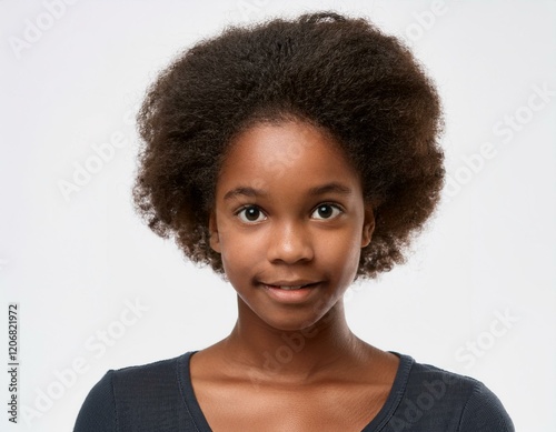Studio Portrait of African Teenager with Defined Defined Defined Defined Natural Curly Bob on White Background