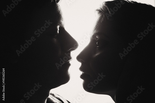 silhouette, kiss, couple, male, love, beauty, female, young, beautiful, portrait, romance, 2, passion, people, adult, caucasian, fashion, model, hair, elegance, glamour, indoor, sensuality, skin, studio, man, girl, woman, face, lip, art, temptation, sexual, naked, head, closeup, desire, activity, affectionate, contour, excitement, facial, flirting, healthy, heterosexual, human, image, lifestyle, man, shoulder