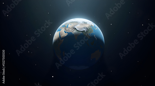 planet, earth, space, star, globe, earth, universe, nature, science, astronomy, exploration, discovery, environment, global, perspective, scale, immensity, distance, awe, wonder, serenity, calm, peace, isolation, realistic, digital, render, graphic, dramatic, continent, water, day, night, present, timeless, blue, green, brown, white, dark, bright, round, circle, light, shadow, surface