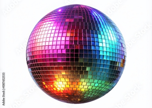 disco ball, metallic, glowing, reflecting, light, isolated, white background, event, celebration, nightlife, dance, shiny, ball-shaped, entertainment, decoration, festive, music, glamour, vibrant, colourful, texture, design, modern, creative, concept, illustration, bright, aesthetic, optical, photo, art, retro, vintage, club, atmosphere, aglow, social gathering, fun, joyful