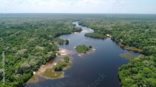 aerial, view, tropical, rainforest, river, cascading, waterfall, nature, landscape, jungle, tree, foliage, green, water, flow, scenic, wilderness, adventure, environment, ecosystem, lush, remote, pristine, serene, tranquil, amazonian, flora, fauna, habitat, wildlife, outdoors, discovery, aerial photography, verdant, canopy, winding, flowing
