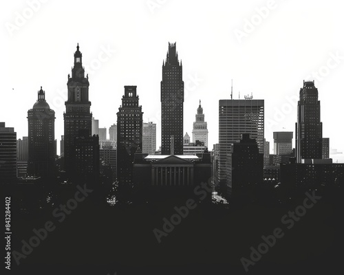 Stunning Black and White Silhouette of a City Skyline Featuring Tall Buildings and Clear Sky Background for Artistic and Urban Design Inspiration