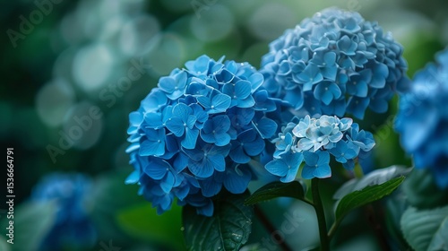 Stunning Blue Hydrangea Blooms in Lush Garden Setting Vibrant Close up of Beautiful Flowers