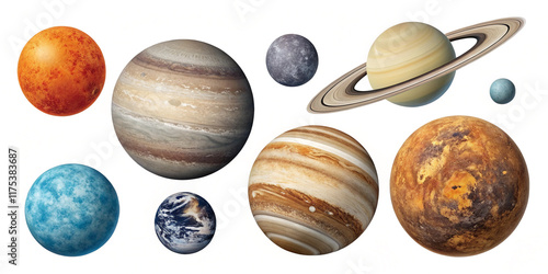 Stunning Collection of Solar System Planets Isolated on a White Background: A Cosmic Journey Through Space