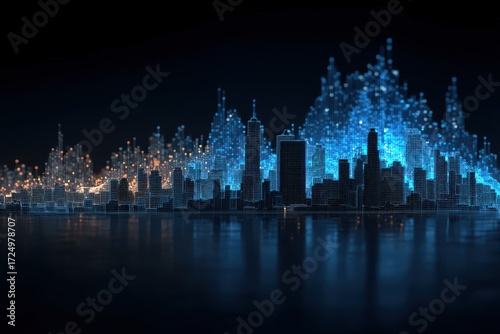 digital, skyline, blue, city landscape, urban life, architecture, technology, urban, aglow, urban development, innovation, city lights, networking, urbanisation, neon, futuristic, metropolitan, metropolis, lively, visualisation, connectivity, infrastructure, design, creativity, conceptual, aesthetic