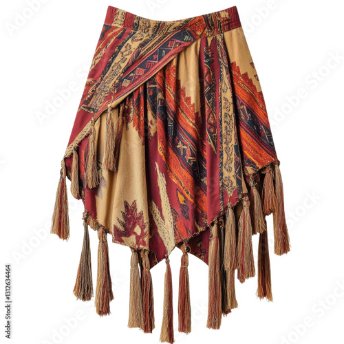Stunning Ethnic Wrap Skirt with Tassels . Transparent background PNG