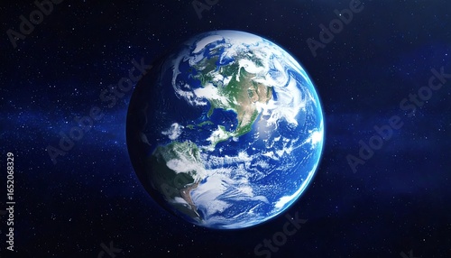 earth, planet, space, cosmos, universe, blue, green, white, cloud, ocean, land, continent, north america, south america, atmosphere, star, night, dark, deep space, outer space, celestial, global, earth, globe, realistic, detailed, digital artwork, environmental, nature, aerial view, environmental protection, global warming, climate change, sustainability, ecology, conservation, planet earth, world map, geography, environmental issue, space exploration, astronomy, cosmology, milky way