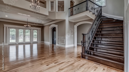 stair, remodel, hardwood, antechamber, entry, family, house, kitchen, construction, home, interior, room, luxury, hotel, furniture, floor, door, modern, apartment, new, day, television, loft, rug, couch, chair, console, flooring, renovation, empty, rail, estate, vaulted, renovate, large, cabinet, big, clean, condo, condominium, furnished, great, living, luxurious, nobody, real