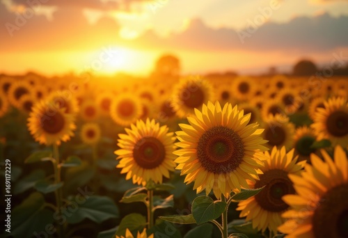 stunning majestic sunrise over expansive sunflower field discover vibrant beauty golden petals, nature, landscape, flora, horizon, glow, morning, dawn