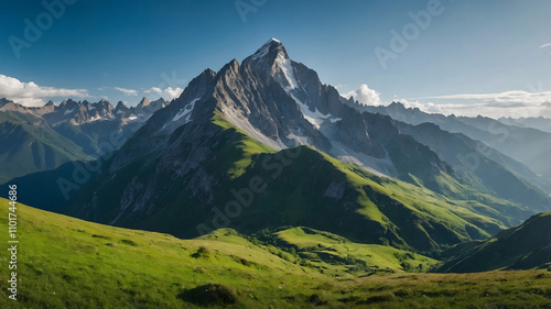 landscape, mountain, mountain, hill, nature, sky, background, travel, environment, tree, dawn, horizontal, no people, photo, sunlight, outdoors, rocky, summer, idylli, majestic, panoramic, peak, scenery, sunrise, vale, weather, color image, morning, scenic, sun, beauty, blue, grass, mountain peak, mountain chain, rural scene, beautiful, natural, spring, view, vale, aerial view, panorama, land, meadow, hiking, green, ai