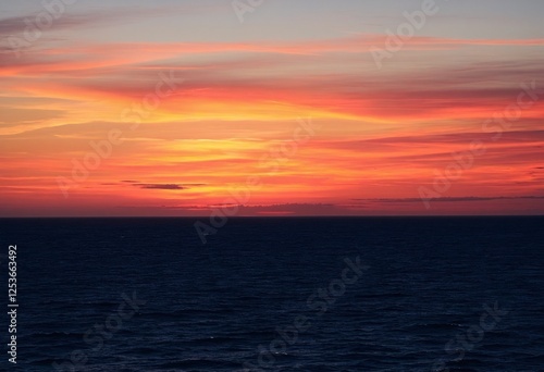 Stunning Ocean Sunset Bathed in Fiery Orange and Pink Colors