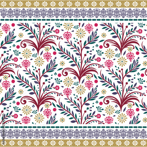 stunning ornamental floral pattern with seamless vintage border for fabric and bedding