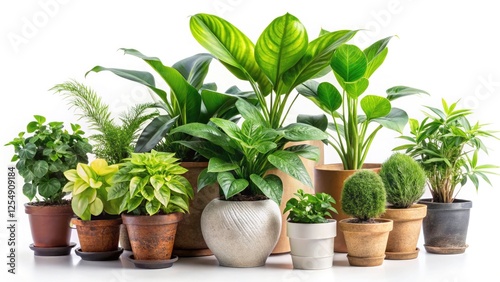 potted plants, plant, white background, botanical, photo, image, photo, studio photography, hi-res, texture, leaf, bright, green plant, closeup, detailed, artificial intelligence, digital artwork, computer-generated, home decor, spring