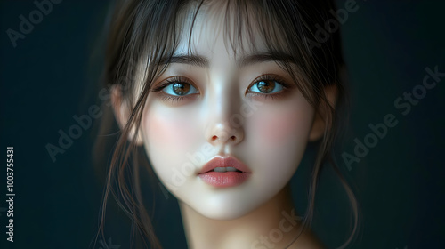 Stunning Portrait of a Woman with Brown Eyes, Long Hair and a Soft Smile