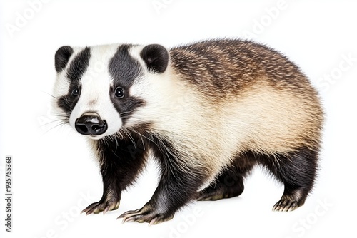 animal, badger, wildlife, fur, mammal, nature, creature, paw, white, black, brown, snout, eye, ear, body, personal, furry, ground, nose, claw, guarded, focused, forest, playful, elegant, detailed, curious, alert, standing, soft, texture, natural, front, side, head, thick, land, small, round, back, young, black-and-white, wild animal