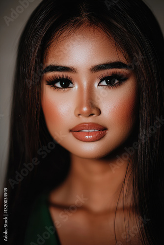 Stunning Portrait of a Young Woman with Radiant Skin and Long Dark Hair