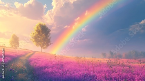 Stunning rainbow illuminating beautiful countryside nature landscape photos