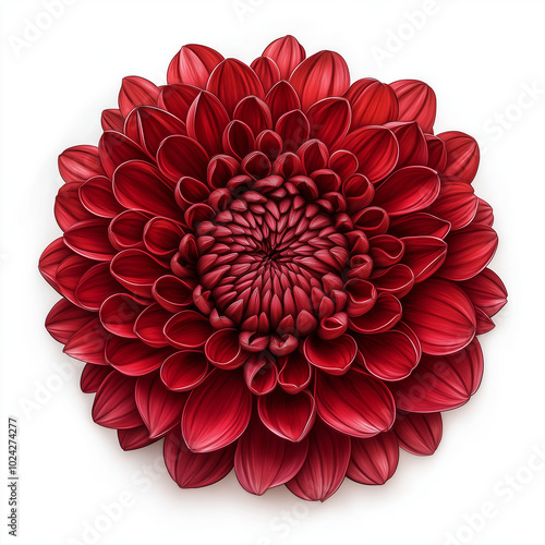 Stunning red chrysanthemum flower isolated on white background, showcasing deep red hues and realistic textures, with intricate petal details and no shadows for a striking floral presentation