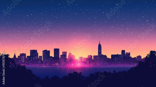 city, skyline, sunset, twilight, colours, silhouette, building, urban, landscape, night, starry, horizon, pink, purple, serene, peaceful, atmosphere, beauty, view, scenic, illumination, travel, adventure, exploration, architecture, evening, nature, light, water, ambience, artistic, digital artwork, design, fantasy, creative, colourful, tranquil, dreamlike, night sky, city landscape, metropolis, panoramic