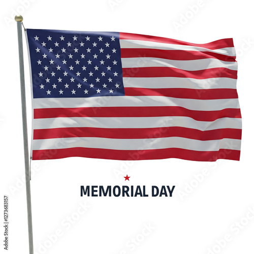 Stunning United States flag waving proudly with 'Memorial Day' text, embodying patriotism, honor, and the spirit of remembrance. Perfect for heartfelt, patriotic designs