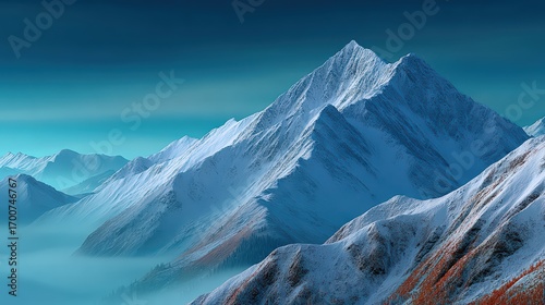 Stunning Winter Mountain Landscape with Blue Sky and Snow-Capped Peaks