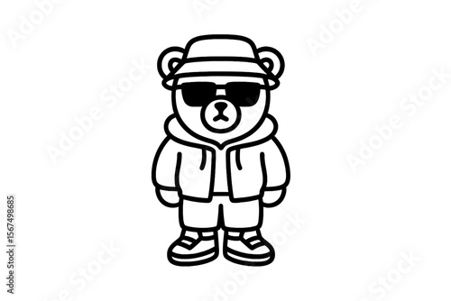 bear, character, sunglasses, hoodie, short, sneaker, stylish, minimalistic, urban, outfit, casual attire, fashion, playful, illustration, cartoon, creativity, trendy, cute, animal, drawing, design, fun, art, personality, pose, confident, graphic, whimsical, cool, creative, clothing, accessory, sporty, modern, cheerful, youthful, wear, style, joyful, relaxed, friendly, unique, designer