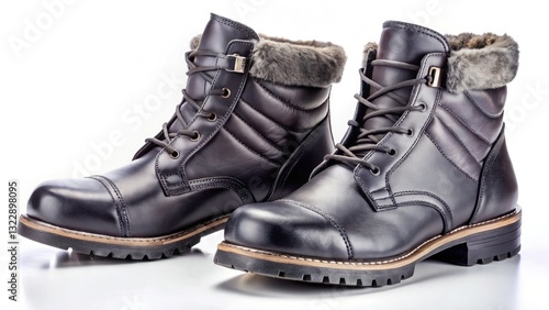 Stylish Black Winter Insulated Leather Boots Mockup for Footwear Enthusiasts and Fashion Lovers