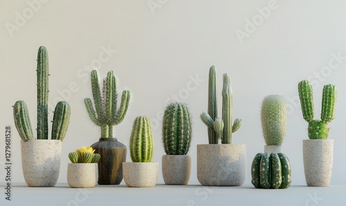 Stylish cactus plants arranged in simple pots, symbolizing resilience and beauty in minimalist design.