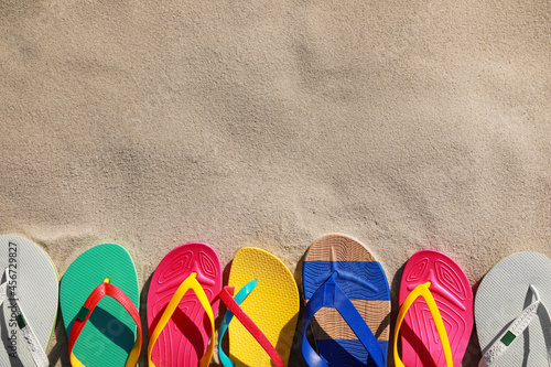 row, line, various, many, different, beautiful, background, sand, object, season, summer, stylish, trendy, beach, shoe, flip, sea, ocean, footwear, pair, view, top, flat, lay, space, copy, text, tropical, sun, nature, holiday, landscape, travel, fashion, lifestyle, rest, heat, coast, shore, fun, casual attire, foot, sandal, slipper, island, nobody, border, colourful