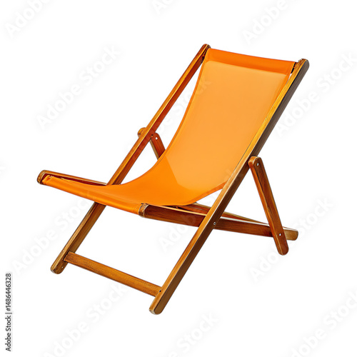 Stylish Foldable Wooden Beach Chair with a Natural Orange Leather Isolated on Transparent Background