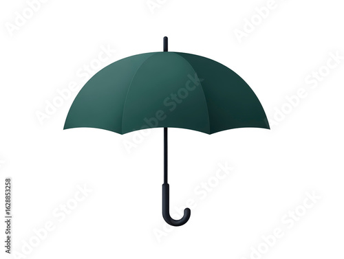 Stylish green umbrella with curved handle, perfect for protection against rain or sun. Its sleek design adds touch of elegance to any outdoor setting