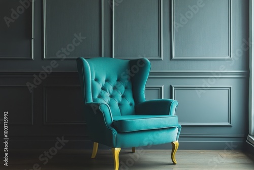 Stylish Grey Interior Featuring Teal Wingback Chair for Modern Living Spaces