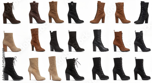 boot, heeled, ankle, brown, black, tan, beige, high, fashion, footwear, trendy, stylish, clothing, design, contemporary, modern, casual attire, collection, accessory, retail, elegant, outfit, woman, comfortable, leather, marketplace, shopping, seasonal, urban, diverse, variety, chic, fashionable, ensemble, presentation, showcase, boutique, high heel, stunning, colours, unique, pattern, style