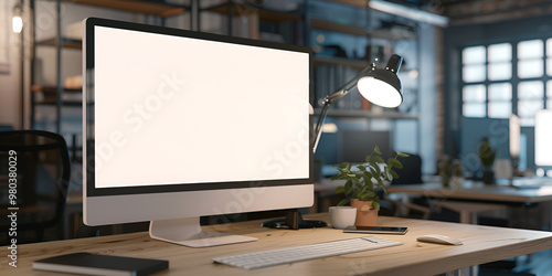 Stylish Modern Workspace with Blank Computer Screen
