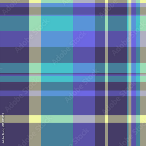 Stylish pastel plaid pattern in teal, purple, and beige. Perfect for textile designs, website backgrounds, or fashion illustrations. The soft color palette offers a modern and versatile aesthetic.