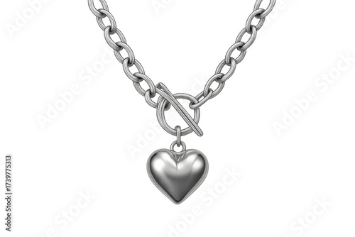 Stylish silver chain necklace with heart pendant isolated on transparent background