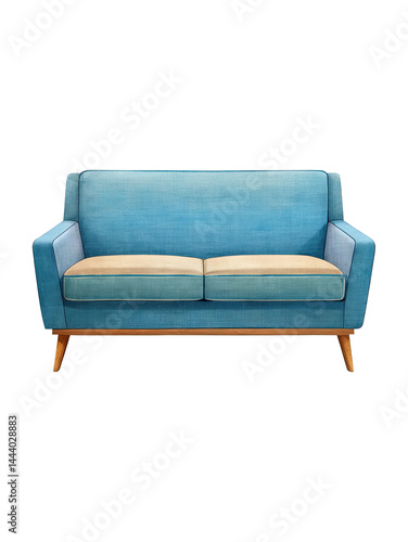 sofa, loveseat, couch, furniture, blue, upholstery, fabric, textile, wood, wooden, leg, modern, design, contemporary, interior, home, decor, living room, seating, comfortable, cushion, beige, accent, style, elegant, indoor, apartment, residence, house, furnishing