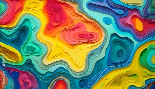 Stylish vector template with layered paper cut shapes in bright blue, green, pink, and yellow, perfect for eye-catching covers and flyers