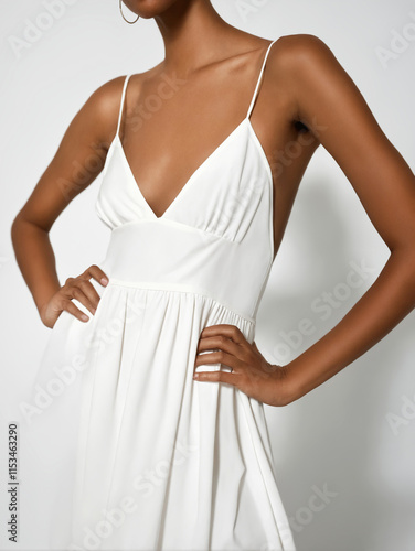 stylish white summer dress on tanned skin beautiful sexy young woman